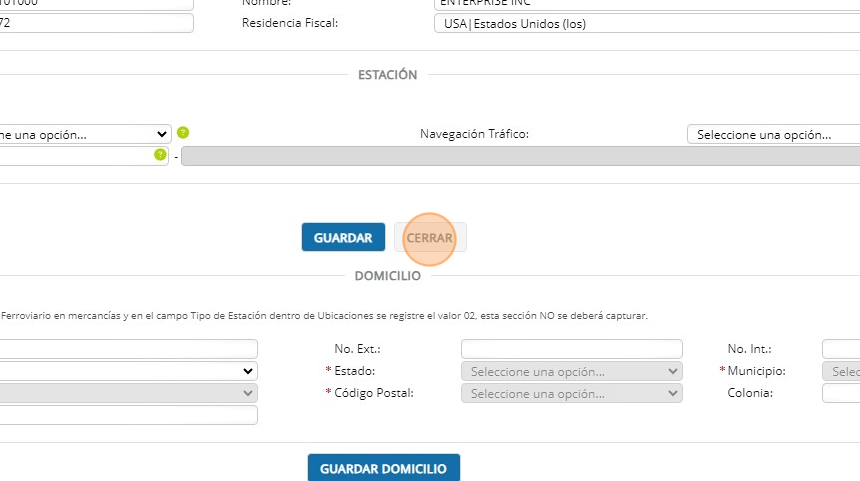 Tip: Ya que se haya guardado la información, se habilita la sección de ¨Domicilio¨ para capturar los datos de la dirección de donde va a salir o llegar la mercancía. Este apartado no es obligatorio, pero si se captura, se debe de registrar todos los campos correspondientes.