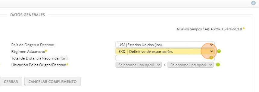 3. Selecciona la opción de ¨Complemento Carta Porte¨.