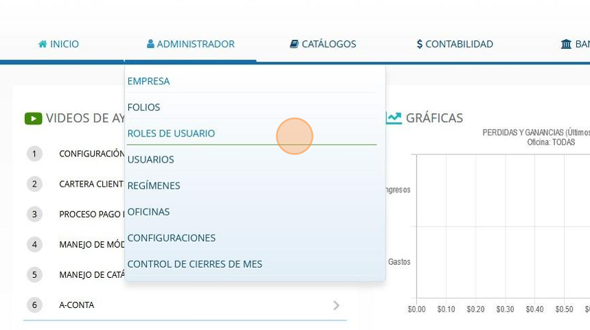 2. Dar click en el sub menú ROLES DE USUARIO.