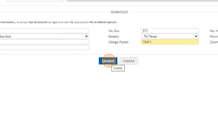 13. En la sección de domicilio se captura la dirección de donde llegaría la mercancía.