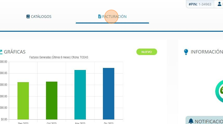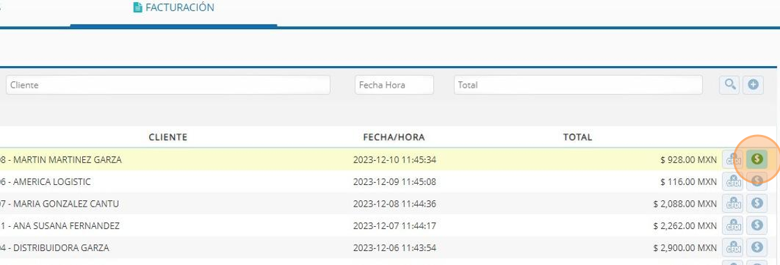 3. Localizar la factura pagada y dar click en el signo de ($) que se encuentra de lado derecho del registro de la factura.