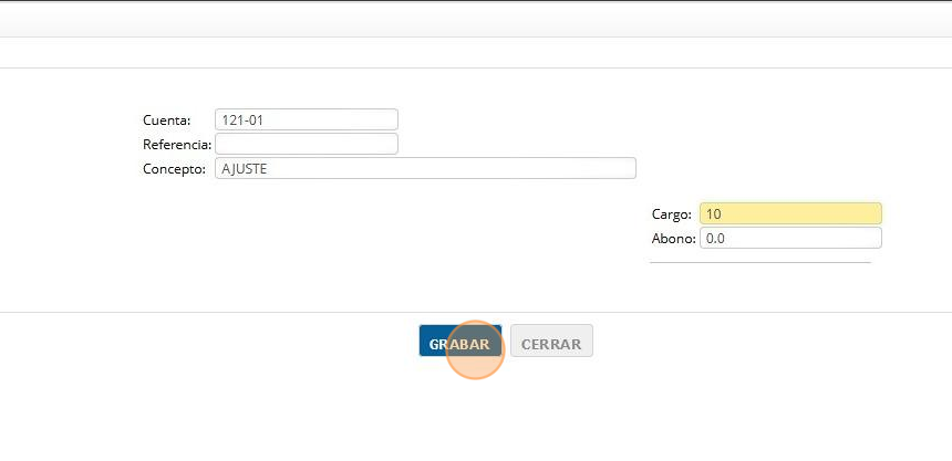 7. Una vez seleccionada la cuenta contable, capturar el importe del CARGO.