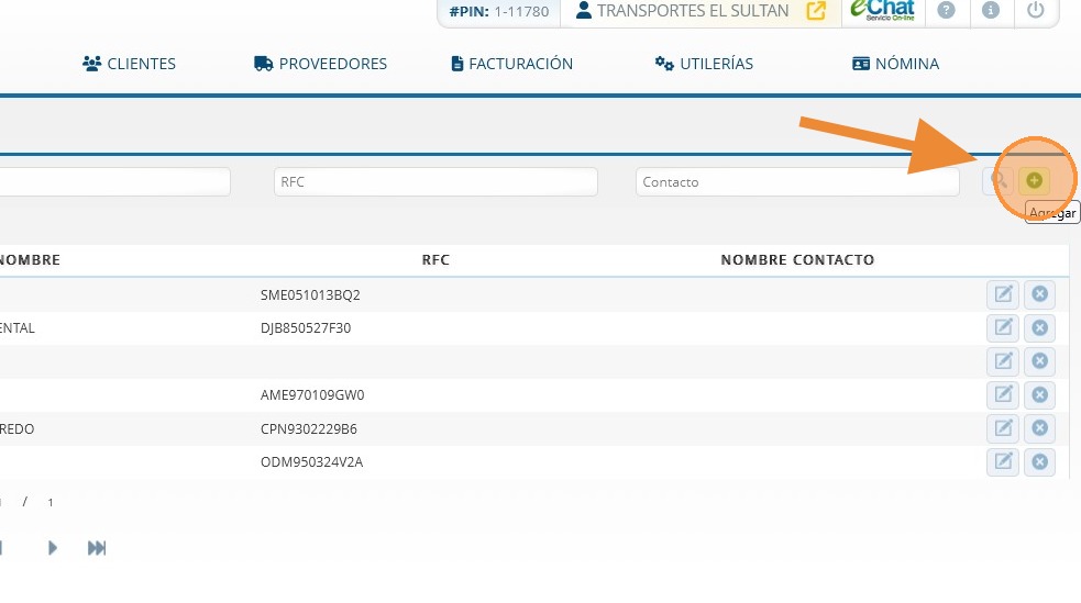 3. Dar click en el signo (+) para agregar un nuevo registro.